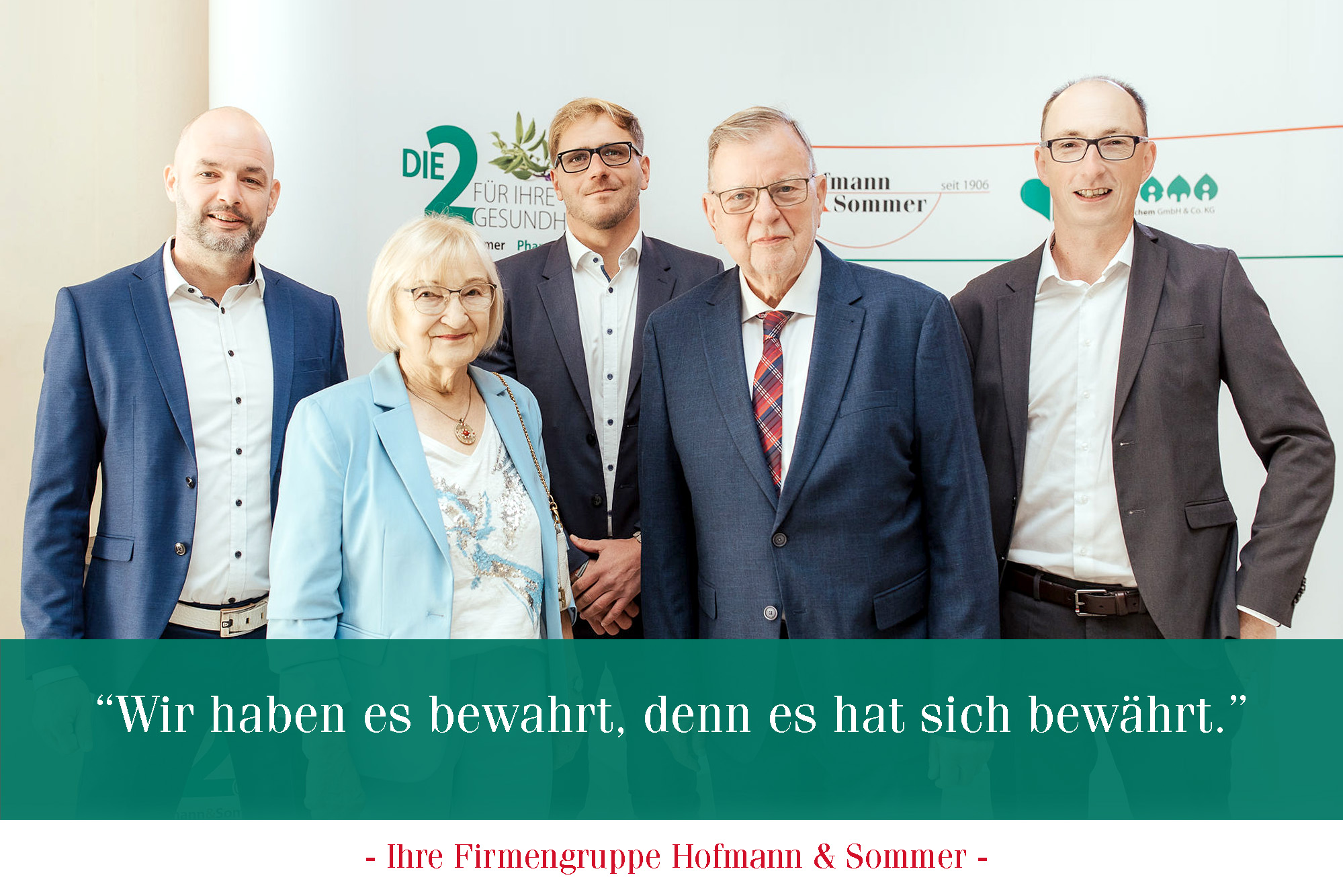 Seit 1906 steht Hofmann & Sommer für bewährte Arzneimittel aus Thüringen. "Alte Bekannte" wie Hoffmannstropfen, Dreierlei-Tropfen, Melissengeist, Hingfong-Essenz und viele mehr kennen viele aus ihrer Haus-Apotheke. Ihren Ursprung haben diese traditionsreichen Arzneimittel im thüringischen Königsee, wo sie im Hause Hofmann & Sommer hergestellt werden. Neben der traditionellen Phytopharmaka-Palette sind seit vielen Jahren auch homöopathische Zubereitungen, Kosmetika, medizinische Bäder, Nahrungsergänzungsmittel und Lebensmittel Teil der Produktpalette.