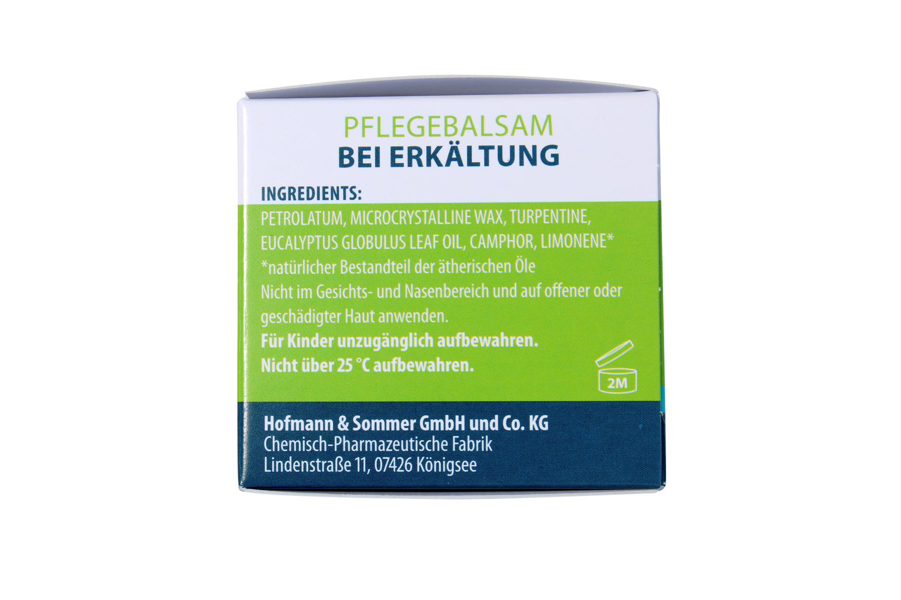 Pflegebalsam mit ätherischen Ölen: Erleichtert das Atmen durch die stimulierende Wirkung der ätherischen Öle (Eucalyptusöl, Campher und gereinigtes Terpentinöl).